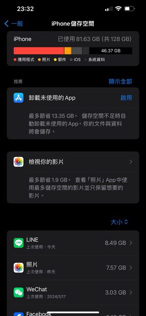 → degneva : 以你128gb一、兩個月要清一次為例 同樣的使用習慣 01/22 15:19