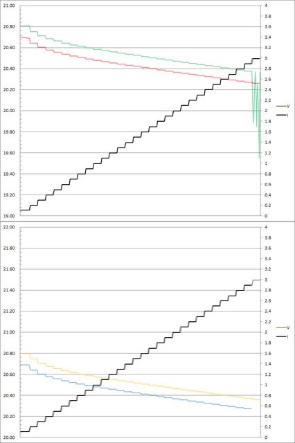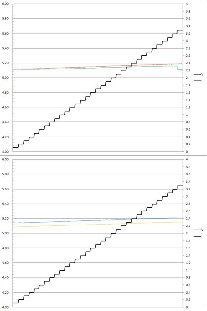 輸出電壓上升,輸出電流超過5.2A(C3)/5.3A(C2/C4)/5.4A(C1)截止