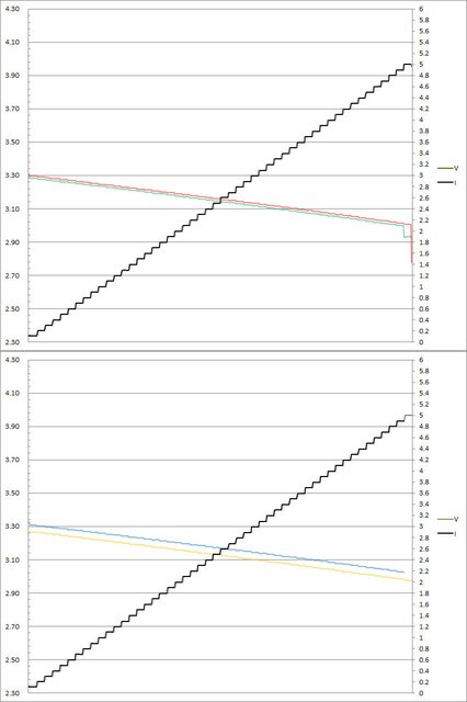 輸出電壓上升,輸出電流超過3.2A(C3)/3.3A(C1/C2/C4)截止