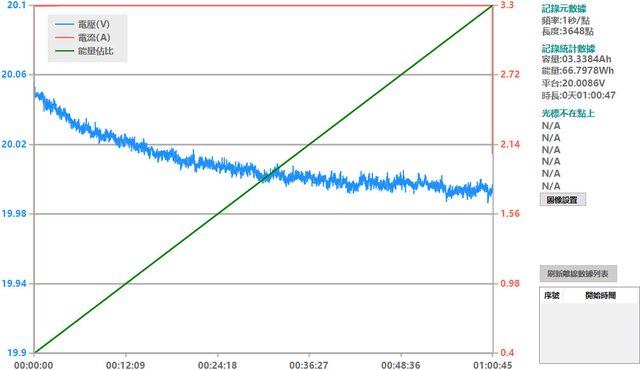 ▼USB-C1搭配3A線材的PPS檔3.3V輸出負載測試,隨著電流增加,輸出電壓下降,輸出電