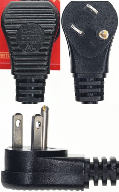 ▼電源線NEMA 5-15P美式插頭,包含護套部分總長度55mm,寬度31.7mm,厚度19.5mm,上