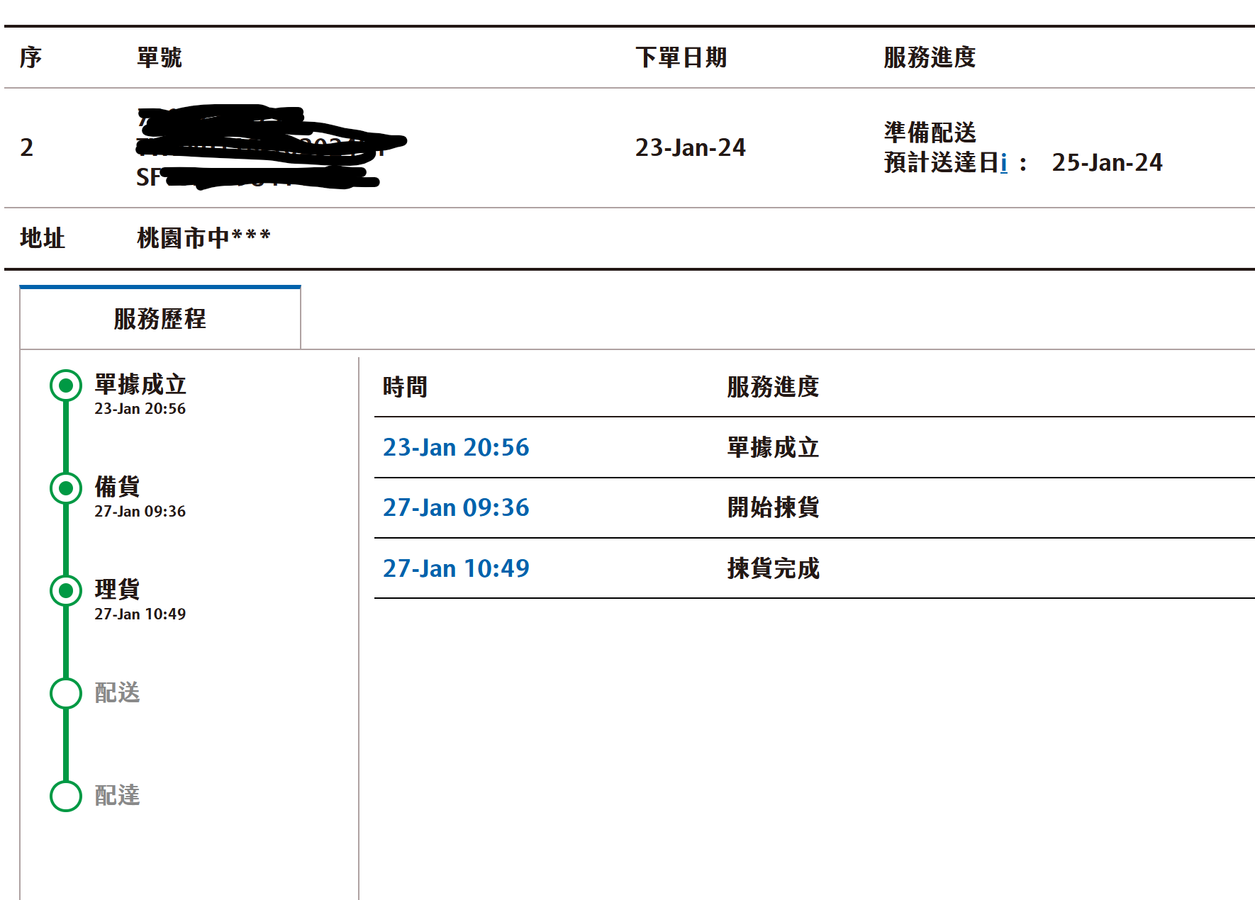 → lovegem : 有動作了,然後預計配達日還是寫在昨天1/26,真諷 01/27 11:39