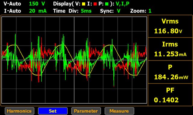 ▼連接交流電,未接任何裝置且電池完全充飽時的消耗功率184.2mW