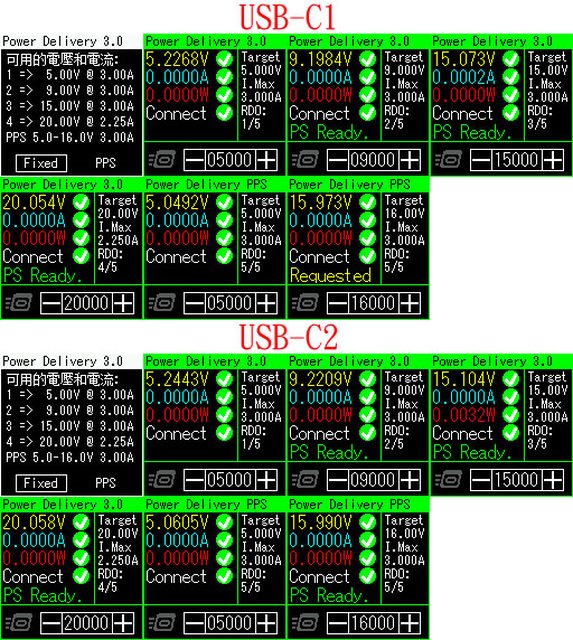 ▼充電器模式下USB-C1(紅)/USB-C2(綠)的PPS檔16V輸出負載測試,隨著電流增加,輸出