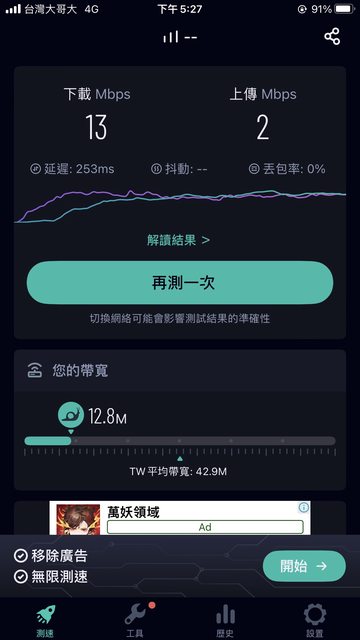 → tomsawyer : 你那個測速是ookla的? 06/12 17:08