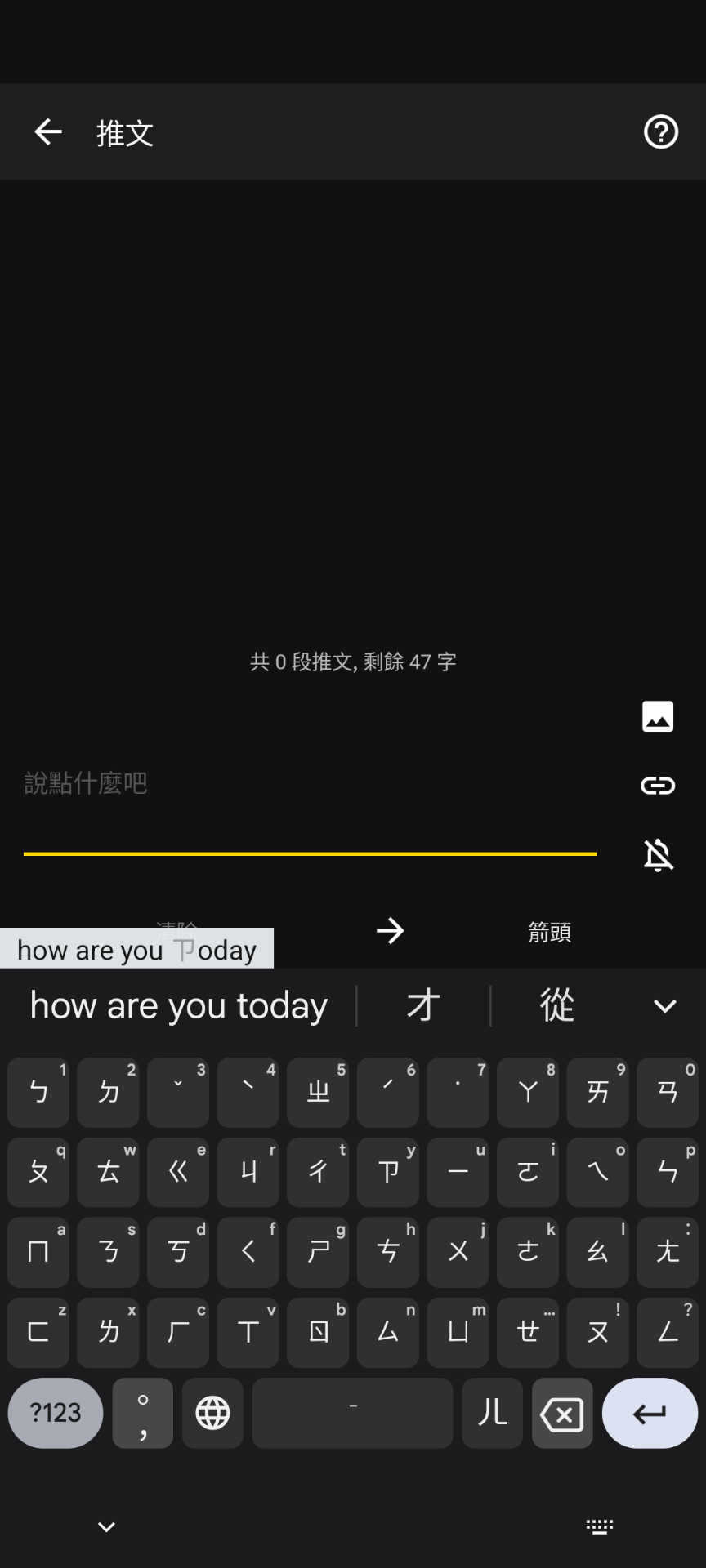 推 Yanpos : gboard簡中繁體出字可解決。缺點是非台灣字庫 07/06 03:52