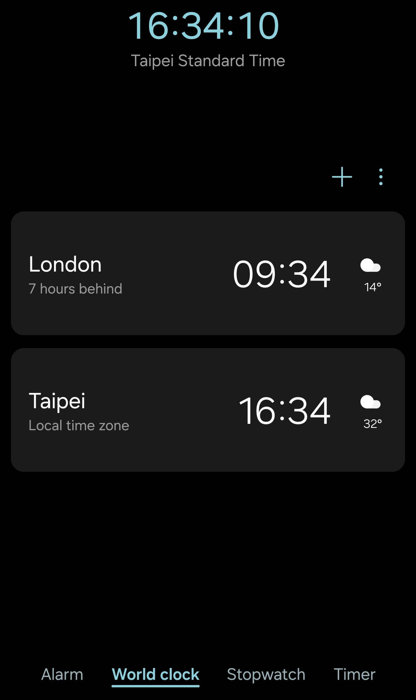 推 xoy : 內建時鐘的世界時間,我也用S22U 07/11 21:13