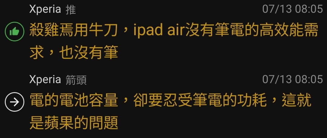 k5648550577 : 產品只買安卓廠商的產品,啊對了,我從沒買過蘋果 07/13 09:10
