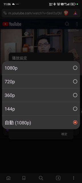 只有360p畫質真的是非常差 在手機上小螢幕720p還勉強和1080沒差很多 480p以下就是差 改用Brave瀏覽器看 是正常的有1080p https://i.imgur.com/fUy2O5d.jpg