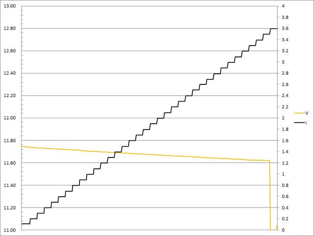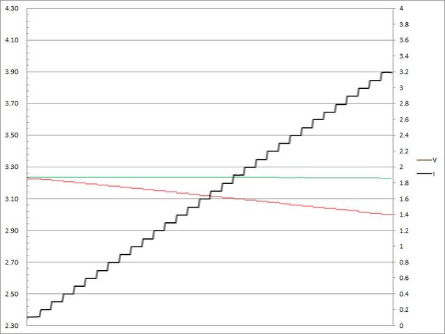 出電流超額時會先壓降,超過3.6A才會截止輸出