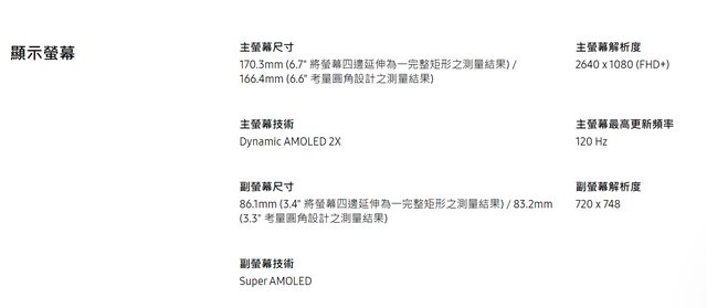 更多樣張請移步(沒很多) https://bit.ly/zflip6_photo 螢幕: https://reurl.cc/Ejq08n 在官網總覽介紹你看不到螢幕相關說明 只有點進去規格才有提及螢幕相關參數 https://i.imgur.com/8YkcXrp.png