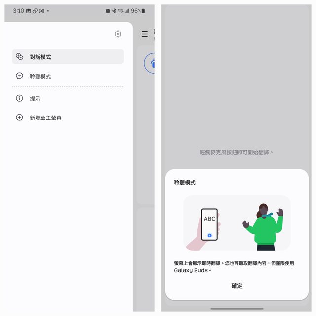 從S24一直在推的翻譯功能新增聆聽模式, 大概用了一下就是原本翻譯是雙方對話翻譯, 聆聽模式就是單向他只負責翻譯給你看, 搭配三星耳機可以不干擾其他人念給你聽。 https://i.imgur.com/6LUaRrS.jpeg