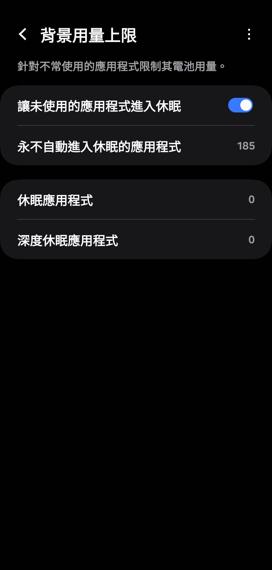 → chichi8181 : 三星除了要看你有沒有開省電 還要在背景用量上限裡 08/07 23:04