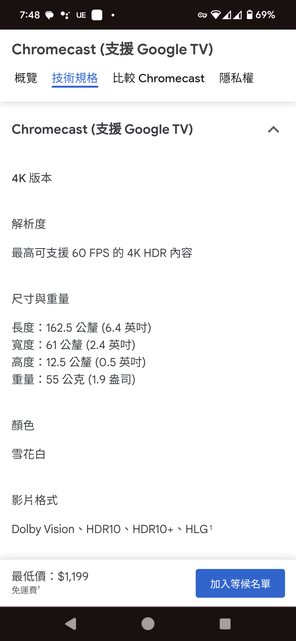 devilhades : Chromecast with google tv 4K那台支援的4K格式很 08/07 17:01