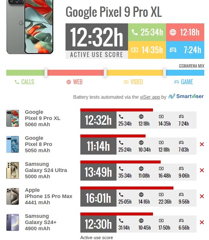 → BadGame : GSMArena 評測 Pixel 9 續航也是比 P8多 有進步了 08/24 01:33