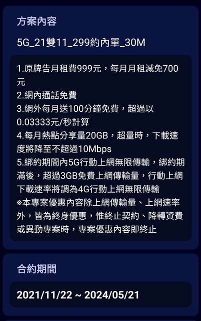 → dinasore : 你的門號是2021年雙11優惠專案,依據公平會要求台哥09/13 08:52