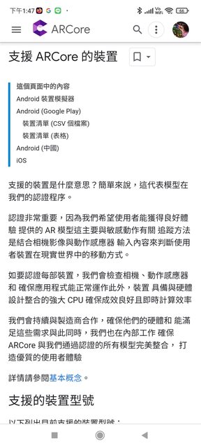 首先先介紹一下這隻手機是有在ARCore 認證裡面的