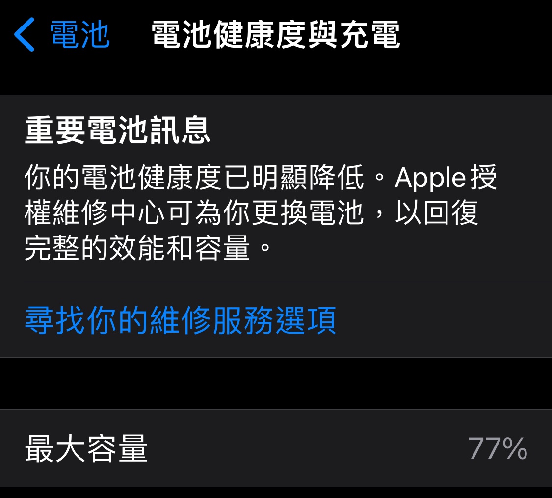 推 f77928 : 電池健康度很神奇 下降很快 但會卡在80左右很久 09/16 16:53
