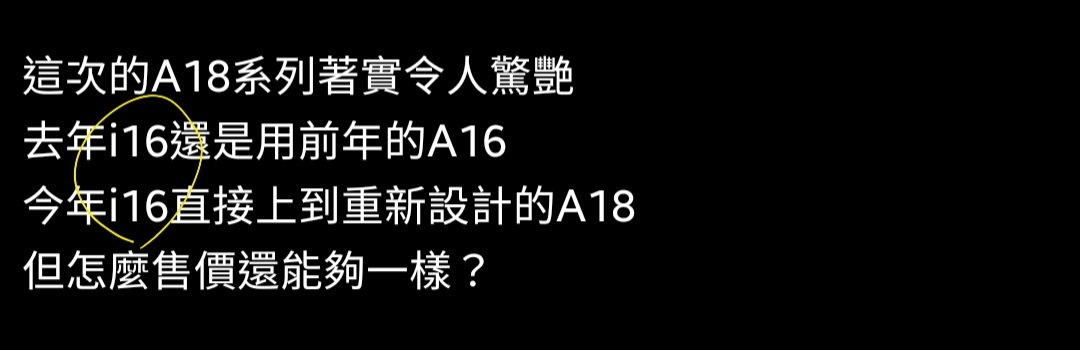 Lansmi : 好的Cost Down方法,要跟A17 Pro比的是A18 Pro才對 09/22 03:43