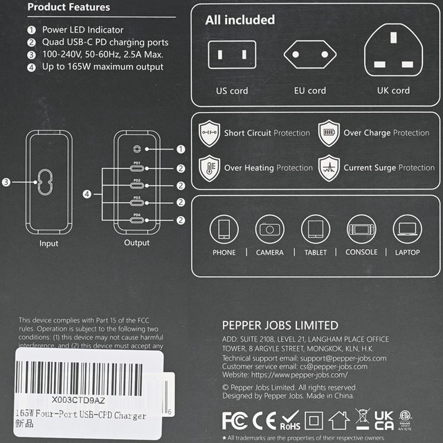 標題[心得] PEPPER JOBS 165W四埠USB-C GaN充電器