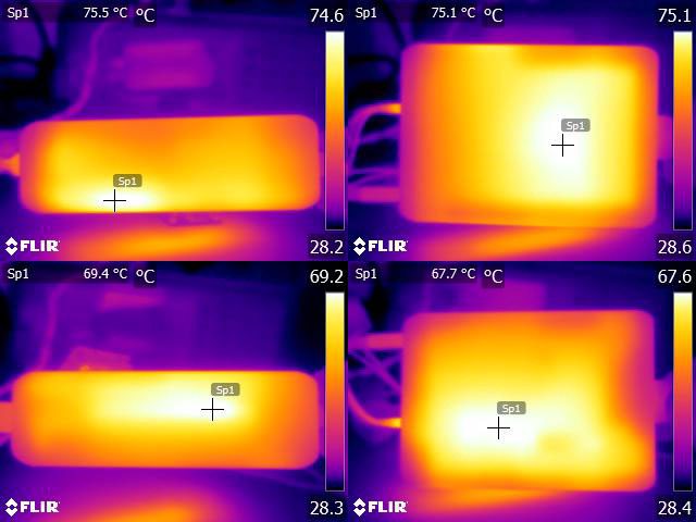 ▼USB-C1輸出100W,USB-C4輸出60W一小時後充電器的紅外線熱影像圖