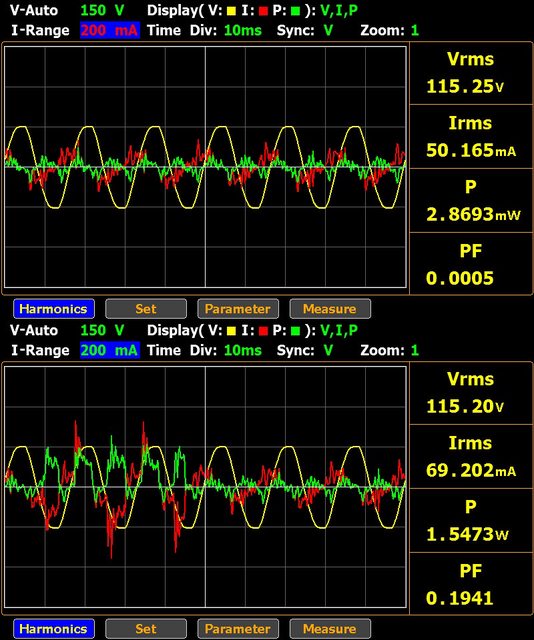 ▼接上電源,未接任何裝置下消耗功率最低2.86mW,最高1.54W