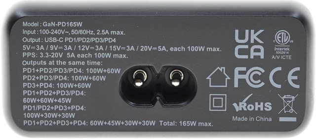 ●4個USB-C輸出,自動偵測主流快充協議,單埠最大輸出100W,總輸出功率最大165W