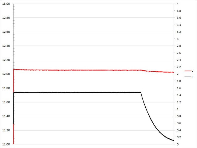◆9V/3A需放電3次才能完全放完電池電量,合併起來的放電Wh為32.81Wh,12V/2A需放電2