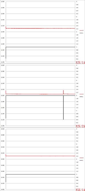 ▼USB-C埠12V/1A、12V/2A、15V/1A放電的電壓電流圖表如下所示,12V/2A放電2次才能完