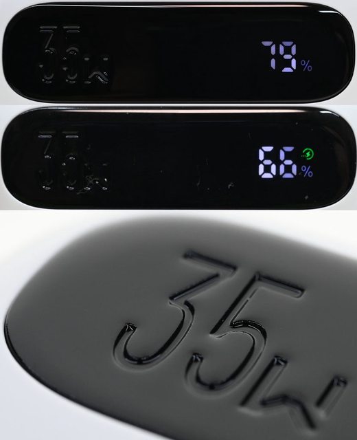 數字右上出現綠色閃電標誌表示已啟動快充,左側有35W字樣