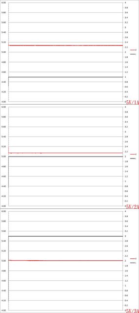 ▼USB-C埠5V/1A、5V/2A、5V/3A放電的電壓電流圖表如下所示