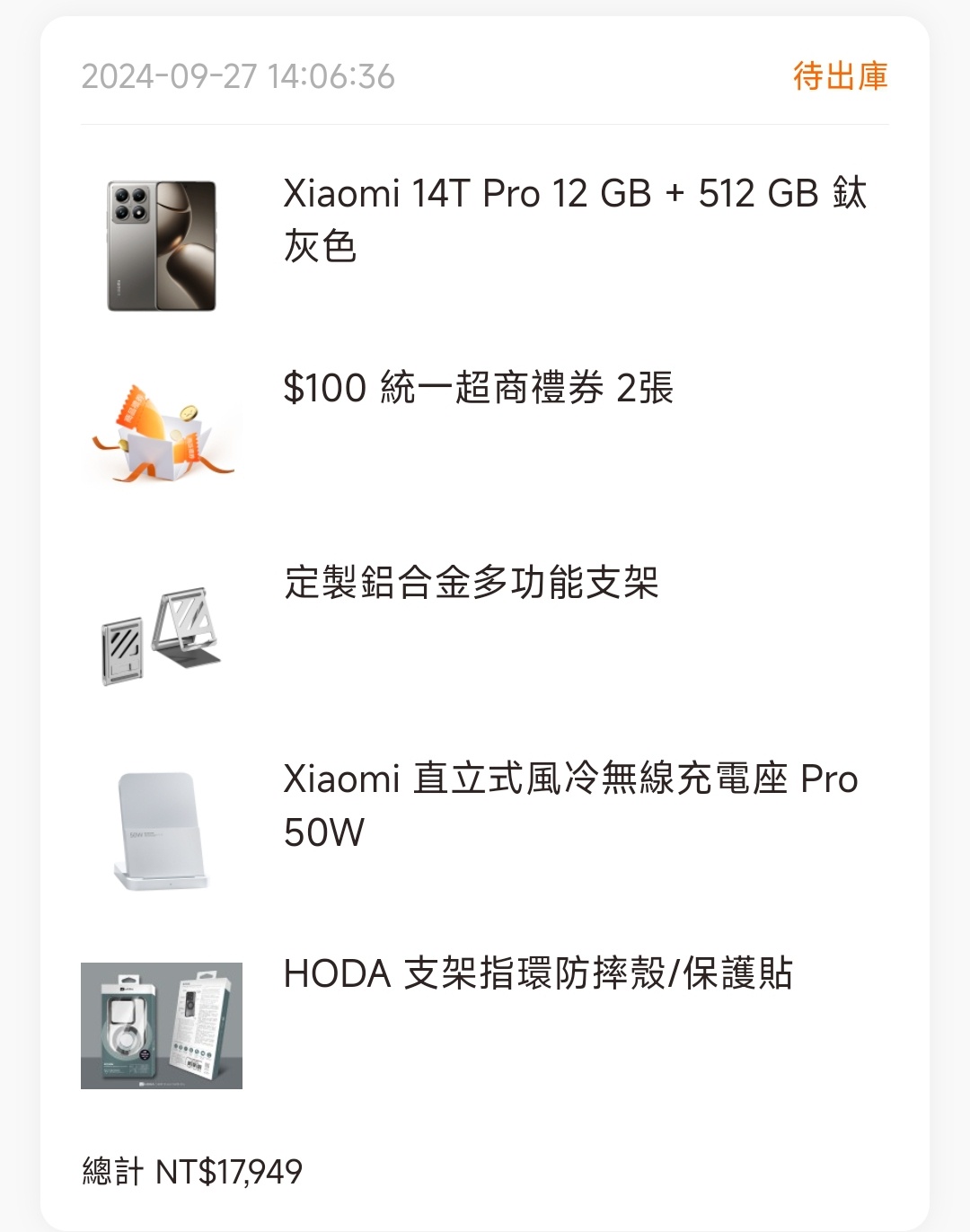 RAA1144557 : 現場 Hoda 殼 貼,無線快充 09/27 15:30