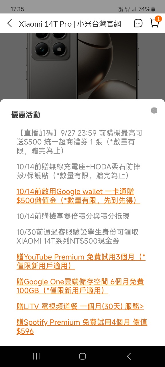 小米14T售價:14,999NT(12+512G) https://i.imgur.com/zE94ssm.png