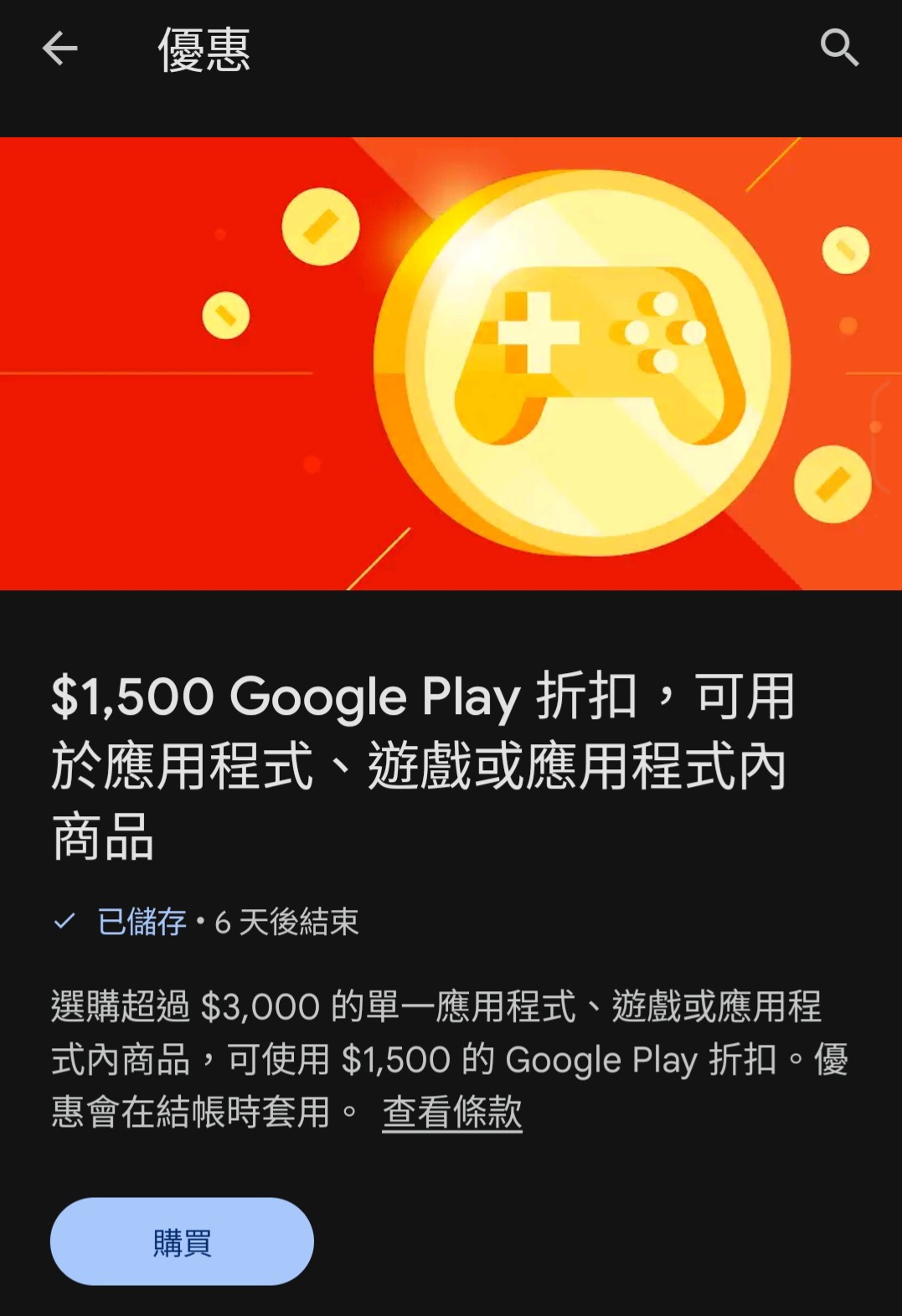 今天早上手機收到一個 google play折扣 https://i.imgur.com/4MiYQww.jpeg