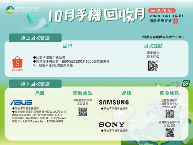 標題[情報] [情報] 環境部2024十月手機回收月活動