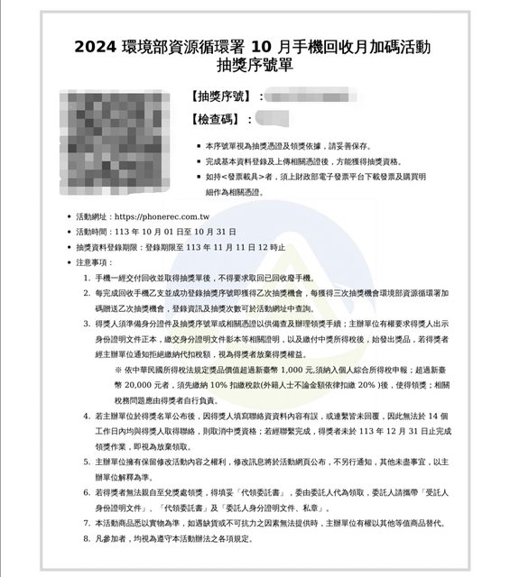 03.活動廢手機回收時間:113年10月1日起至10月31日止;登錄抽獎時間開放至113年11月11