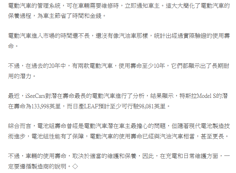 → frank01 : 量使用壽命,那就沒得說了,乖乖買油車吧 10/04 09:06