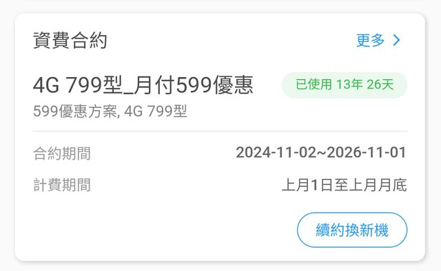 → david3033 : 我原本是599的4G不限速 後來電銷打來有優惠 11/04 04:12