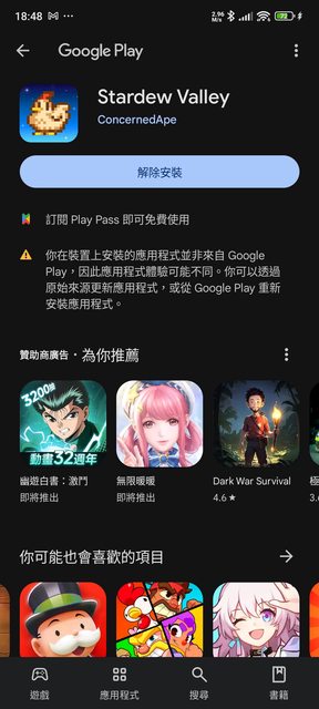 實際上app是剛才從GooglePlay安裝的 (手機內會安裝可以執行的app只是商店顯示有問題)