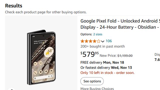 → oopsskimo : 哇 Pixel fold比六折還低 11/11 10:04