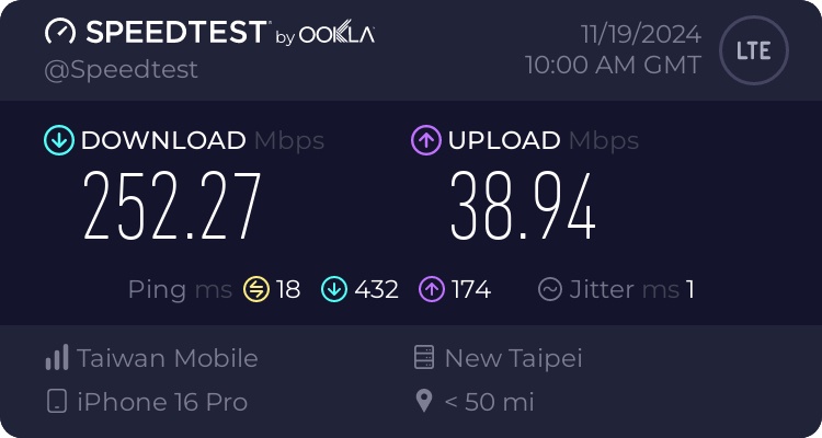 → tszt : 中旬左右開始變好,頻段連線全部改台灣大哥大 11/23 07:00