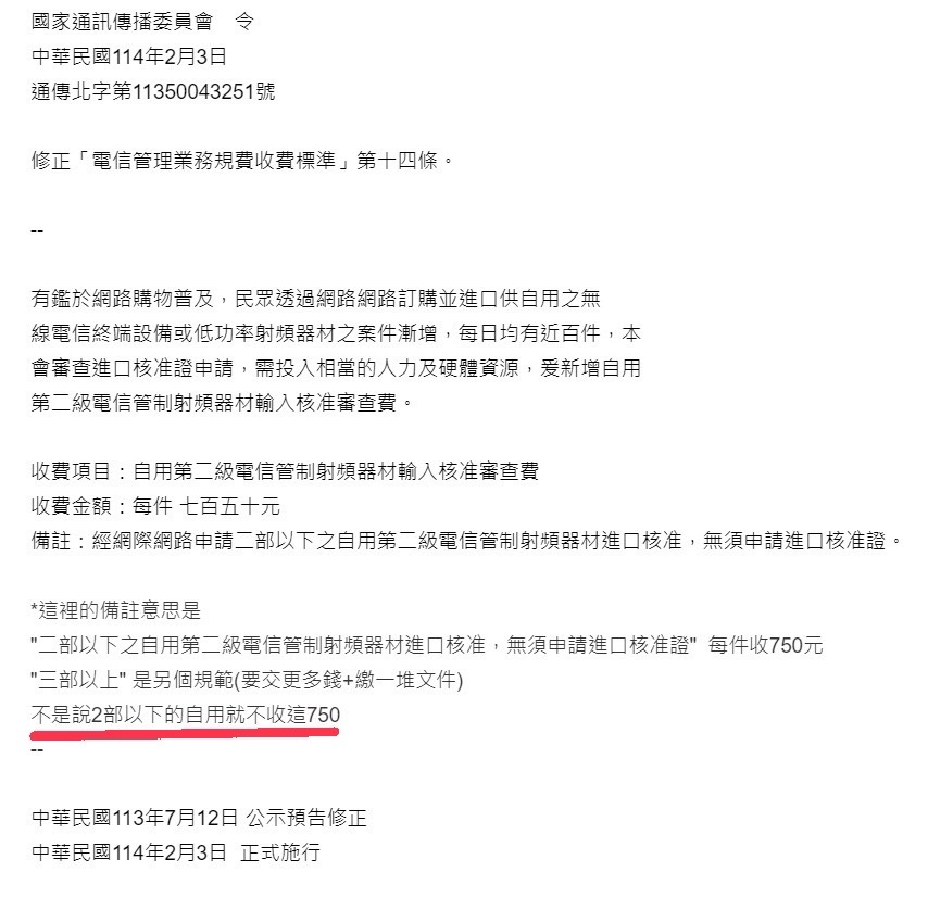 → ruanidiot : 沒吧 規費是一回事 你進口非審核過的射頻設備依然 02/07 21:41