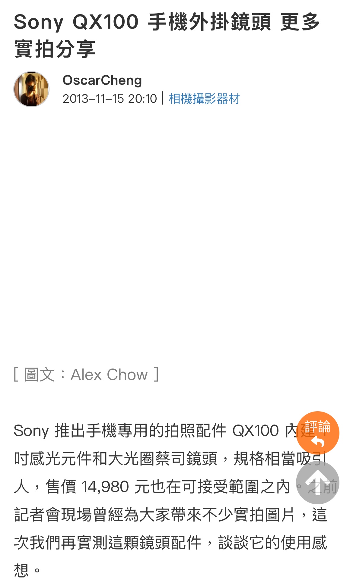 推 jhangyu : Sony QX會死是因為連結畫面的速度Lag太嚴重 03/03 20:29