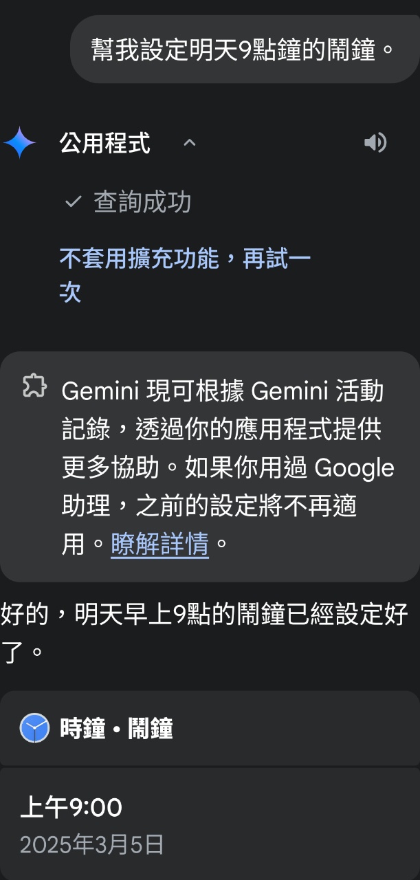 推 Marxs7 : Gemini 目前用2.0可以設定倒數計時跟鬧鐘啊 03/04 23:05