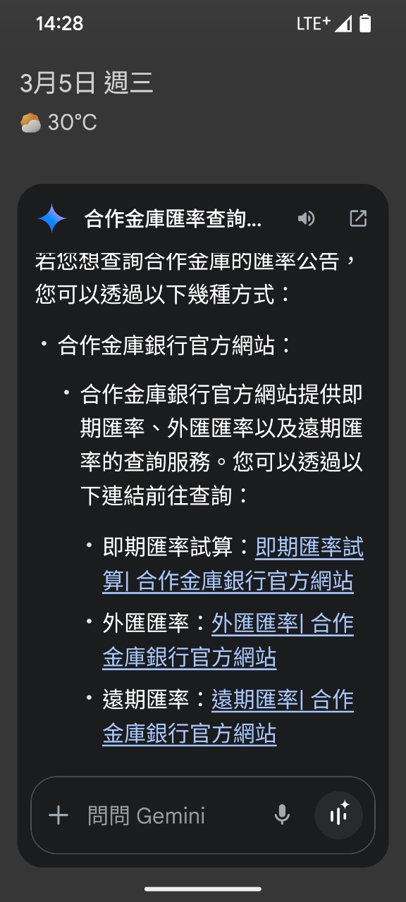 推 widec : 我問匯率它有回答阿,只是後面拖一堆囉哩叭嗦的 03/05 09:16