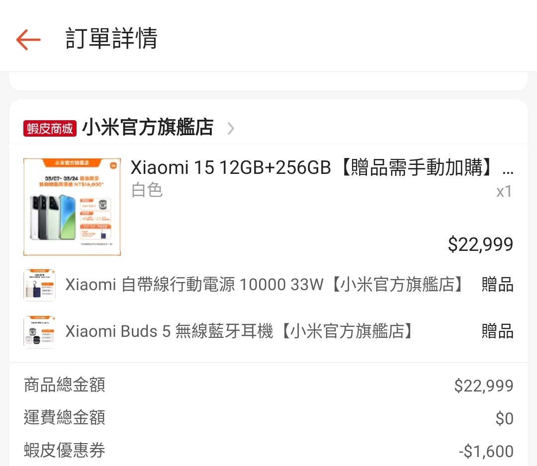 推 lazyguy0213 : 蝦皮小米15的耳機送完了 03/09 00:36