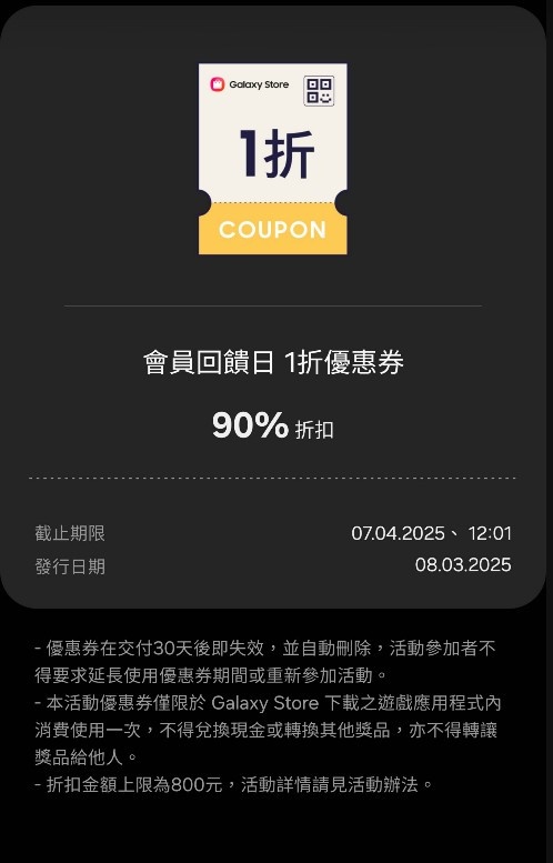 推 dkchronos : 三星的一折優惠券上限抵800啦,每個折數都有上限額 04/01 07:29