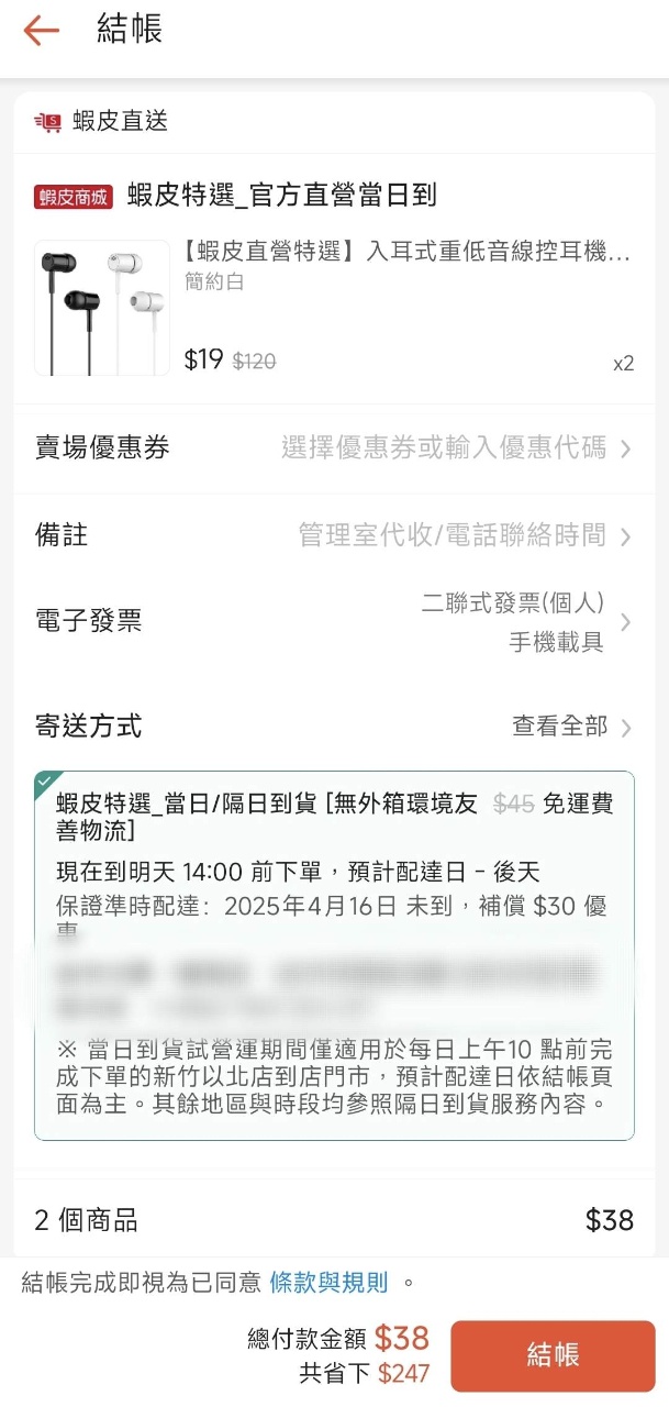→ ATTW : 蝦皮特選直營 現在兩副38元免運 只能要求有聲音了 04/14 22:21