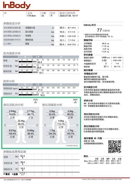 標題[閒聊] Inbody部位別肌肉分析-各指標標準?