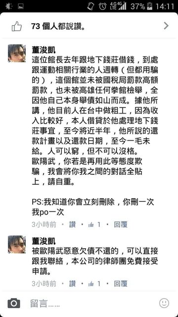 館長也有借錢給他拿不回來